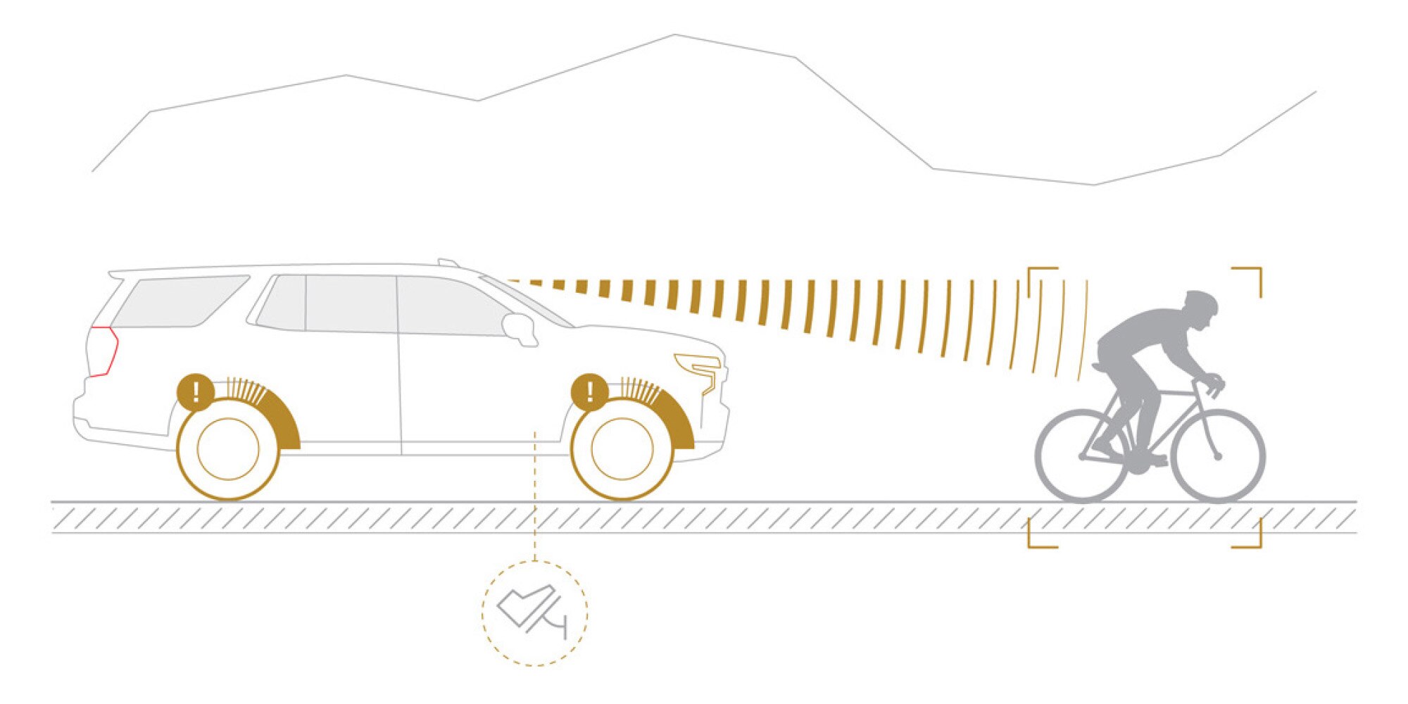 Alerta y frenado de peatón frontal.